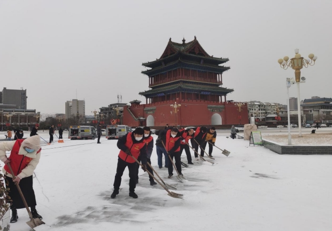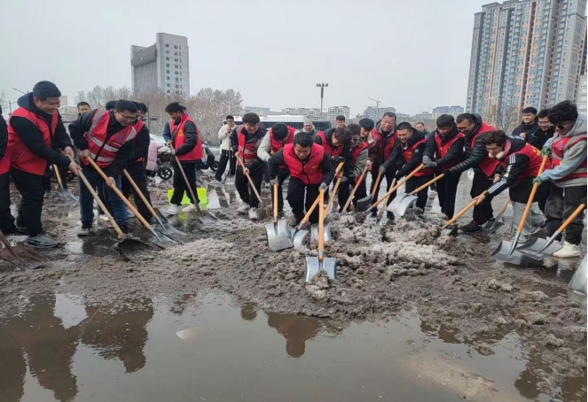 受冷空氣影響,臨汾地區(qū)迎來(lái)了2024年春節(jié)假期后的第一場(chǎng)霙(yīng),市氣象局專家解釋到:霙就是天上下冰粒的意思。因冰粒原因,使得道路上積雪變成了一層薄冰,給廣大市民的正常出行帶來(lái)了極大影響。2月21日上午,在臨汾市市政公用服務(wù)中心黨委辦的統(tǒng)一安排下,中臨集團(tuán)迅速響應(yīng),積極應(yīng)對(duì),組織黨員20余人,干部職工百余人對(duì)鼓樓廣場(chǎng)、解放路(青獅街口——水廠十字路口)進(jìn)行義務(wù)清雪。